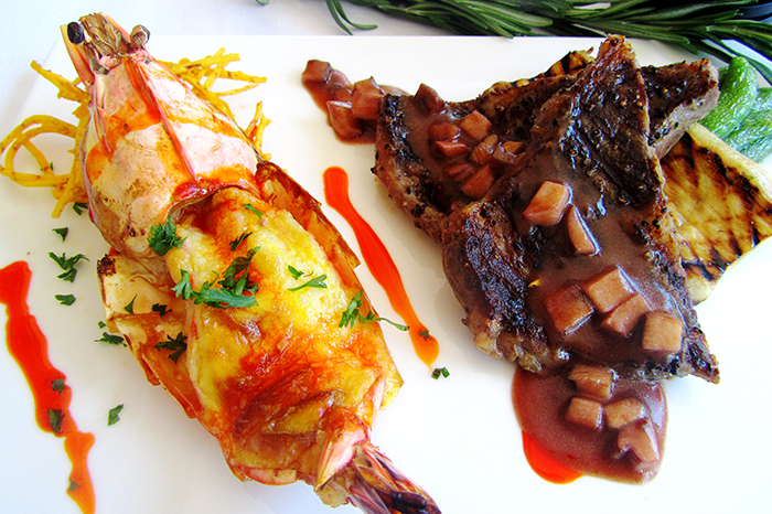 肉類-烤安格斯牛排荷蘭汁焗開邊大蝦